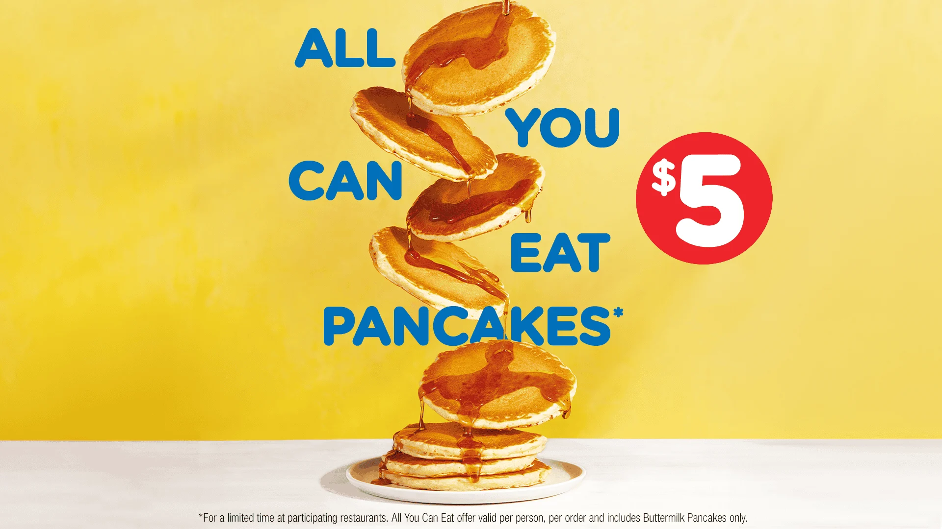For a limited time, the restaurant’s popular all-you-can-eat pancakes are back on the menu at participating locations. Frugal diners can feast without breaking the bank.