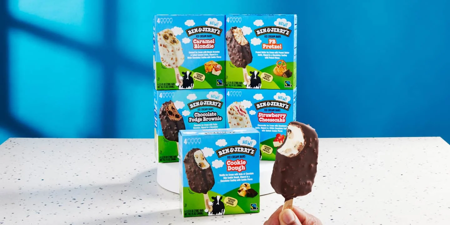 Find the new Ben & Jerry’s Ice Cream Bars in the freezer aisle as soon as January 2026, available in a 4-pack with 2.5-oz. bars — priced at $5.99 to $7.49.