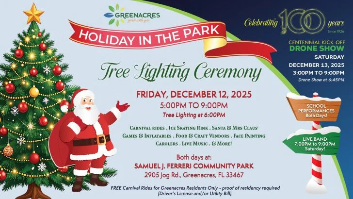 The City of Greenacres is turning 100 years old in 2026 and is inviting the public to take part in the festivities at these special Holiday in the Park events.