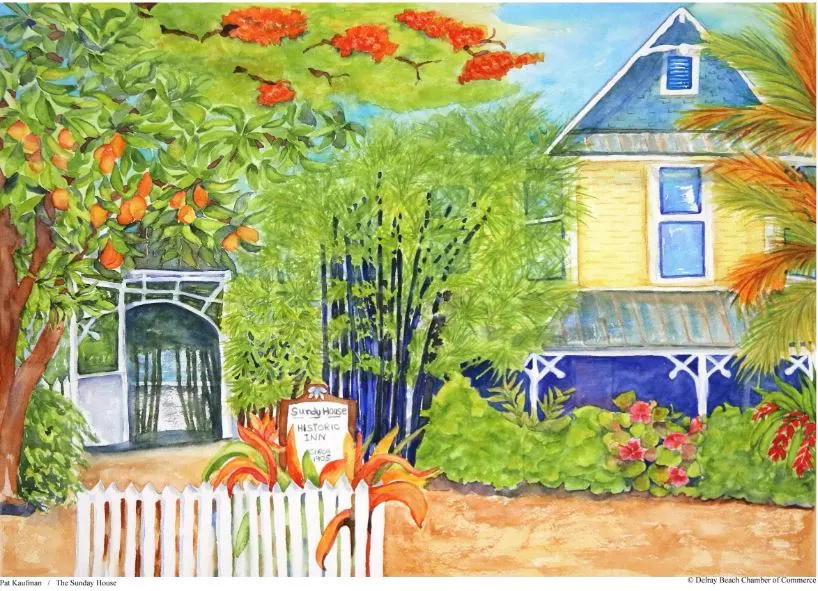 We haven't seen the 2022 poster yet. Pat Kaufman, a long-time resident and artist of Delray Beach offered her vivid, tropical watercolors for the 2021 rendition.