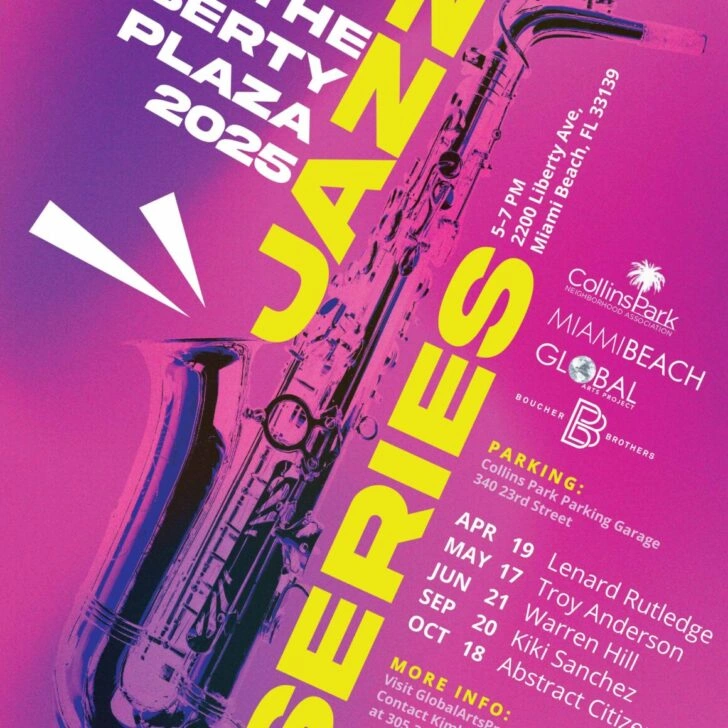 The Liberty Plaza Jazz Series season, presented by the Collins Park Neighborhood Association and The City of Miami Beach returns for its 2025 season featuring concerts from April through June and in September and October.