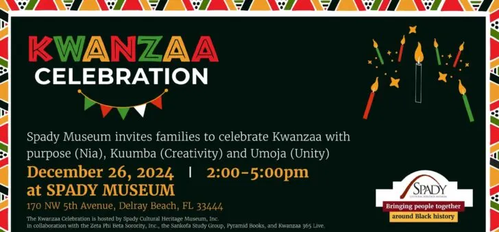 The Spady Cultural Heritage Museum in Delray invites the public to its annual Kwanzaa Celebration 2-5 p.m., on Thursday, Dec. 26, 2024. It's a free event with RSVP to secure your spot at this celebration of culture, community, and unity. A $10 donation is requested.
