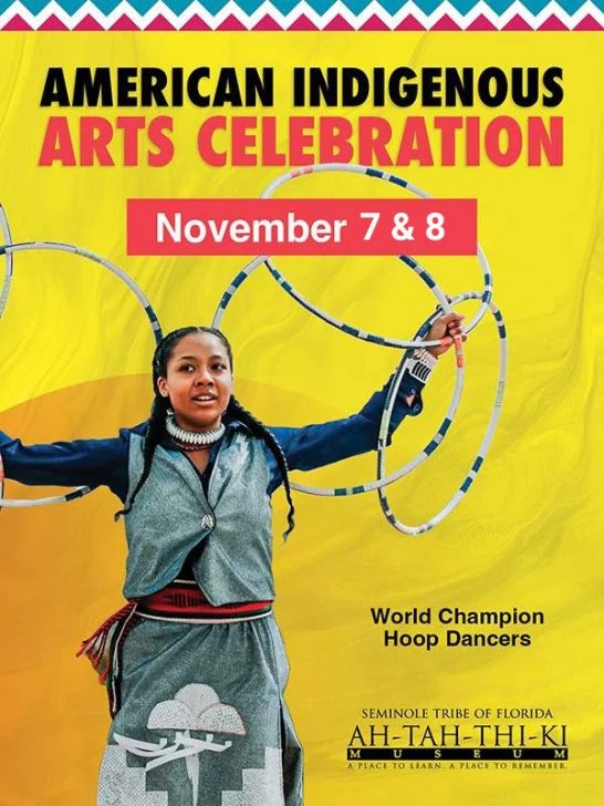 The Seminole Tribe of Florida’s Ah-Tah-Thi-Ki Museum will once again host the American Indigenous Arts Celebration, Friday & Saturday, Nov. 7-8, 2025, on the museum’s festival grounds in Big Cypress.