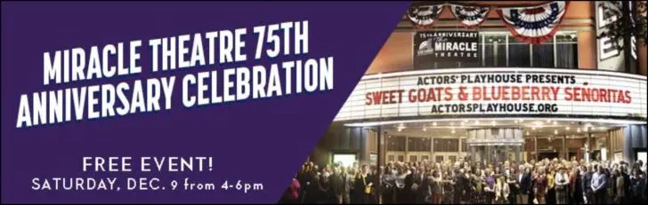 Miracle Theatre in Coral Gables is celebrating 75 years with a free afternoon event with music, performances, tours, refreshments and the public is invited.