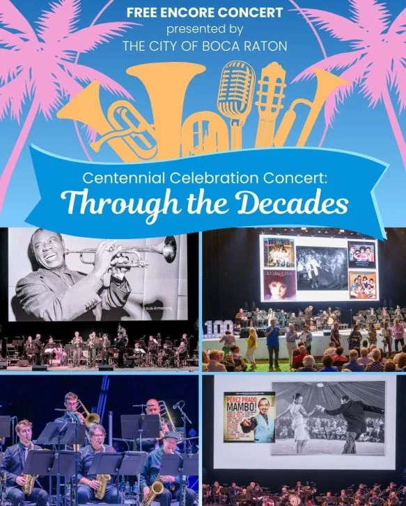 The Boca 100 party continues, as the city celebrates year 100 with sight and song. This multimedia Big Band extravaganza takes the audience on a journey back to the town’s founding.