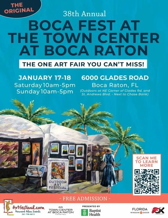 BocaFest will be back to Town Center at Boca Raton and for 2026, it promises to be bigger and better, with everything from paint on canvas, to photography, 3D media, sculpture, jewelry, and other unique artisan crafts. Entry is free.
