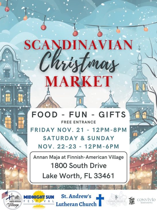- Where: Annan Maja Heritage Hall (Finnish-American Village) at 1800 South Drive, Lake Worth Beach