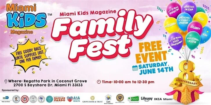 More than 7,000 people are expected to attend this year's 8th Family Fest at Regatta Park, hosted by Miami Kids Magazine. Entrance is free!