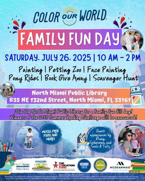 There's still plenty of fun this summer and City of North Miami's Library is the place to be for it! That's where on July 26 from 10 a.m. to 2 p.m. you can come enjoy Color Our World: Family Fun Day.