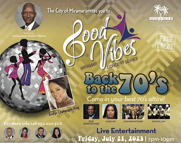 Good Vibes in 2023 is 7 p.m. July 21, with food vendors on site if you'd like to nibble. Wearing your own '70s attire is encouraged.