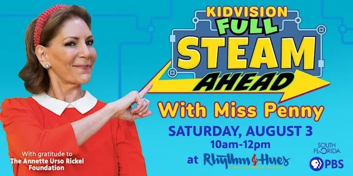 South Florida PBS presents: KidVision Full STEAM Ahead from 10 a.m. to noon on Saturday, Aug. 3, 2024, at Rhythm & Hues, 7725 S. Dixie Highway, West Palm Beach.