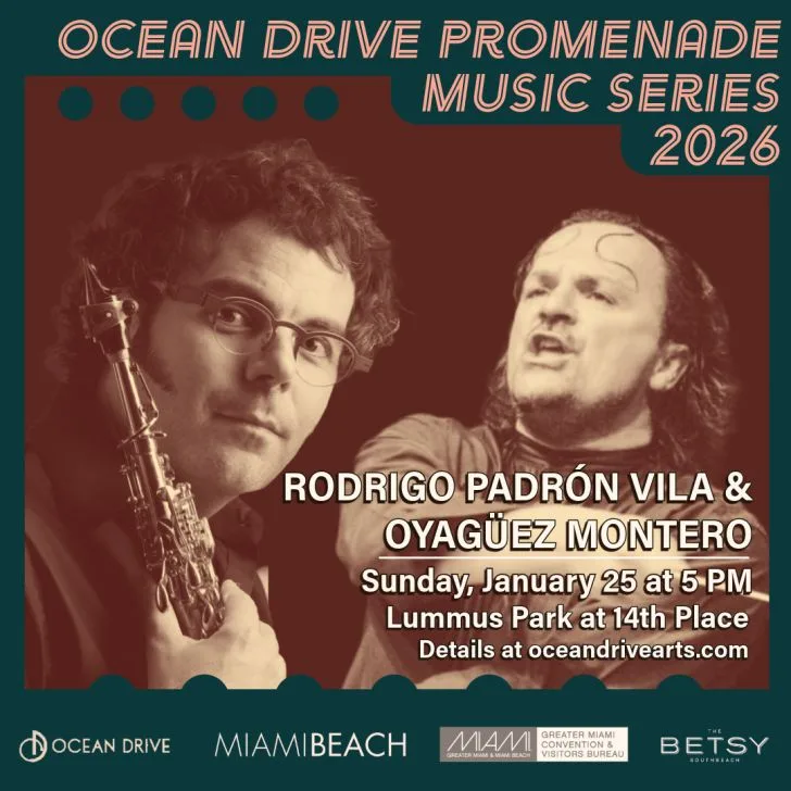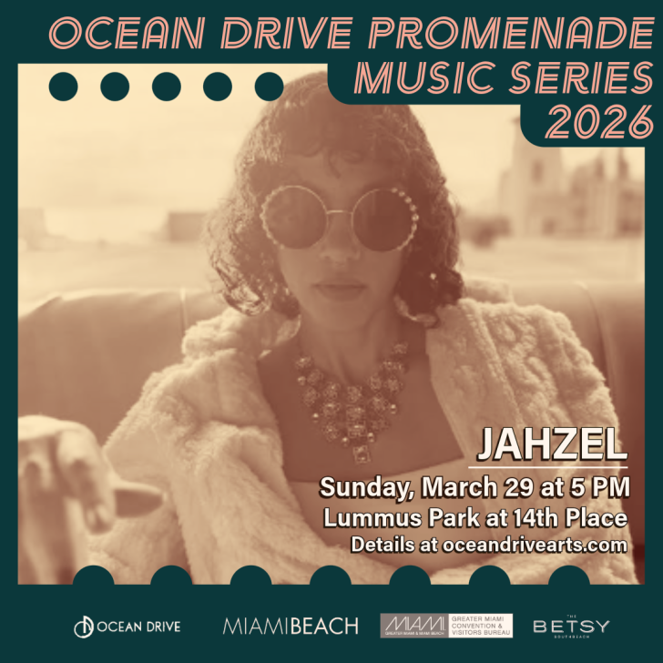 The Ocean Drive Promenade Music Series presents a free concert every Sunday from 5-6:30 p.m. between 14th Street and 14th Place in Lummus Park on Ocean Drive in Miami Beach in front of The Betsy Hotel.