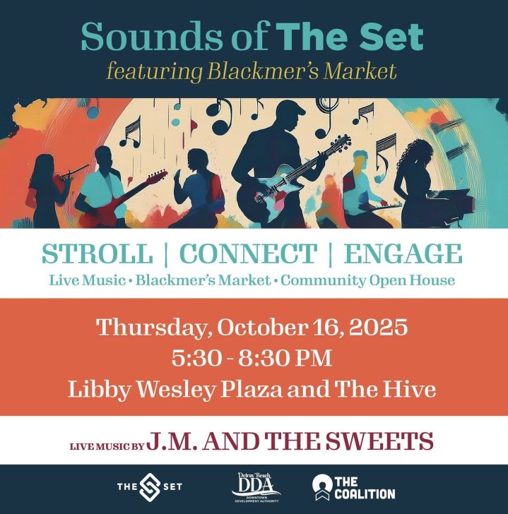 “Sounds of the Set” is a community event in Downtown Delray Beach that features live music, local vendors at the Blackmer's Market, and cultural celebrations inspired by Afrofuturism.