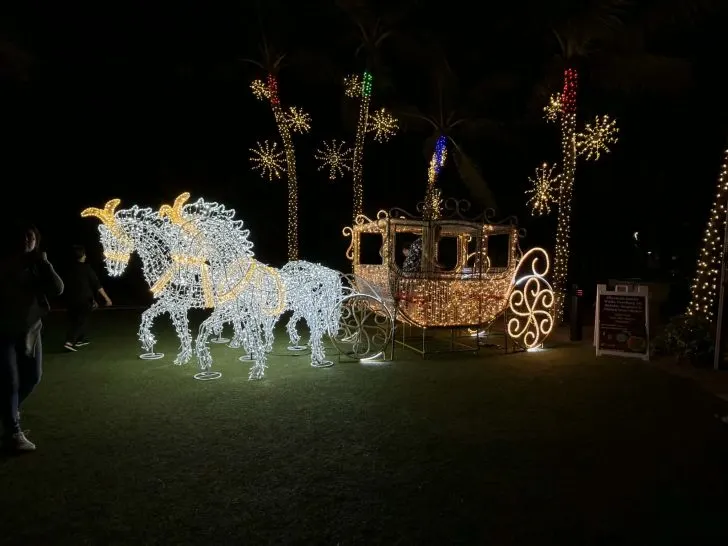 The City of Pompano Beach has a horse and carriage made of lights as part of its display at Pompano Beach Park at A1A and Atlantic Boulevard. The city has displays in various neighborhoods, include at The Pompano Beach Pier. You can park at meters and in city garages.