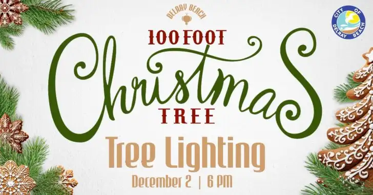 - Delray Beach 100-ft. tree & Holiday Village open Dec. 2 through Dec. 31
