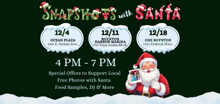 For details about FREE Santa Photos, visit this website to see where to get and how to download them from the Boynton Beach CRA flickr page.
