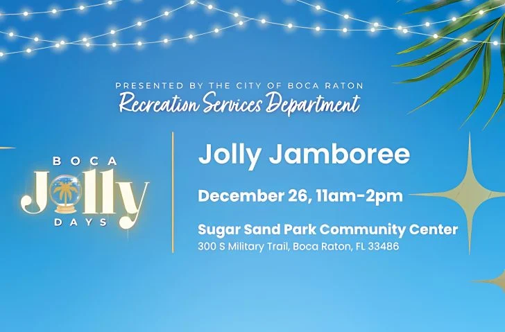 Boca Jolly Days is still going strong, so if your kids enjoy trackless train rides, face painting and glitter tatoos, head over to Sugar Sand Park for this fun event especially for youngsters.