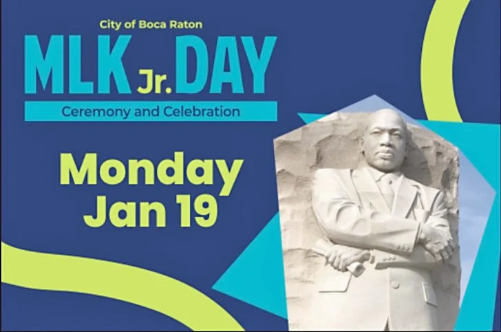 The City of Boca Raton will celbrate MLK Jr. Day, Monday, Jan. 19, 2026, with day-long festivities, including a march with jazz bands, a ceremony and public Unity Celebration at Mizner Park.