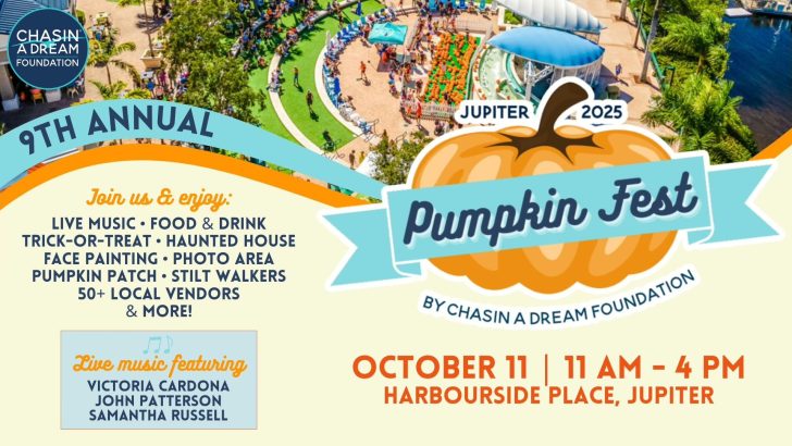 Get ready to celebrate fall with all the trimmings! Harbourside Place in Jupiter is once again hosting its annual Pumpkin Fest to support the Chasin A Dream Foundation and everyone is invited.