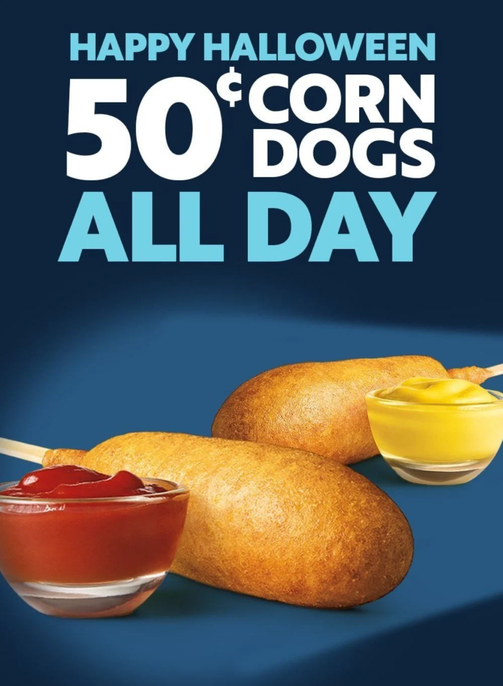 On Oct. 31, 2025, the popular fast-food restaurant is offering corn dogs for just 50 cents at participating locations. Any add-ons are extra.