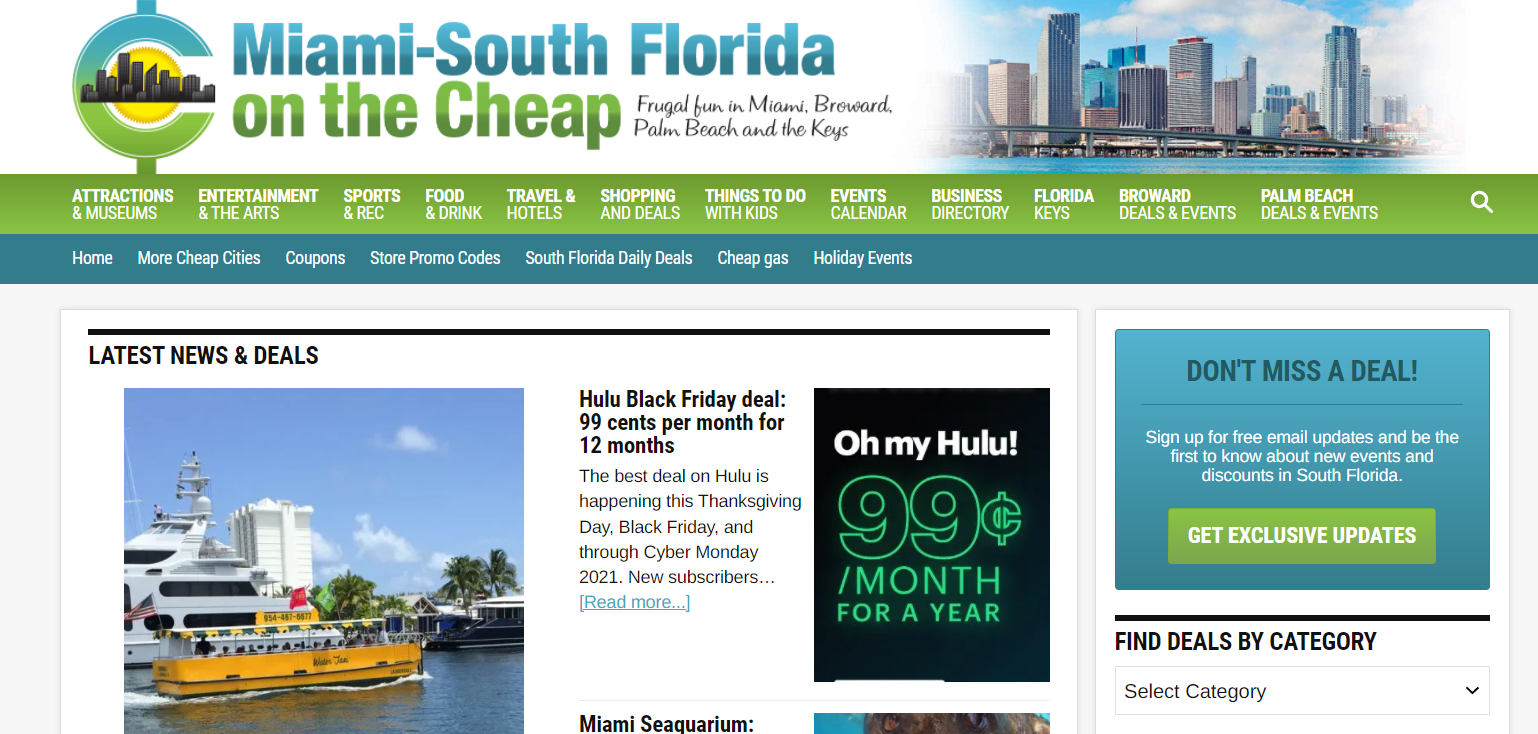 The Miami-South Florida on the Cheap site also has a new, faster, more mobile-friendly framework under the hood. This is part of our commitment to continue to be the top South Florida source for free and cheap things to do, discounts and deals.