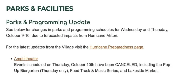 The safety of our staff and community are our top priority. Please note the following property updates in response to the inclement weather caused by Hurricane Milton.